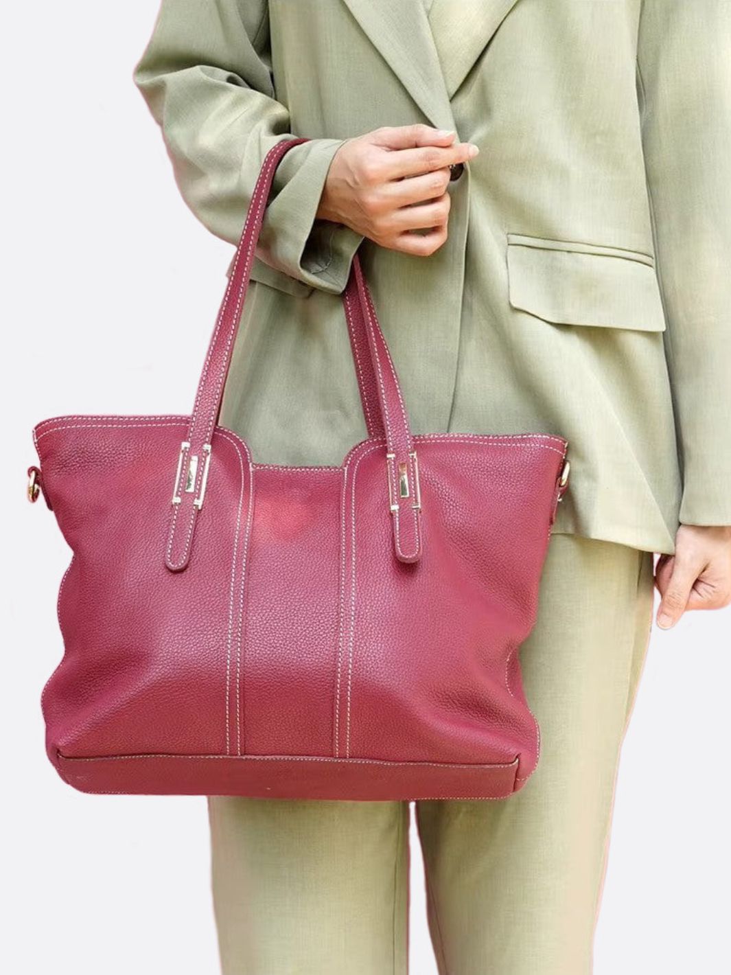 Avec sa ligne souple et généreuse, ce cabas en cuir de vachette conjugue amplitude et mouvement dans un style libre et affirmé. Sa silhouette légèrement arrondie, ses anses confortables et son grain naturel évoquent une allure spontanée, prête à accompagner chaque instant de la journée.