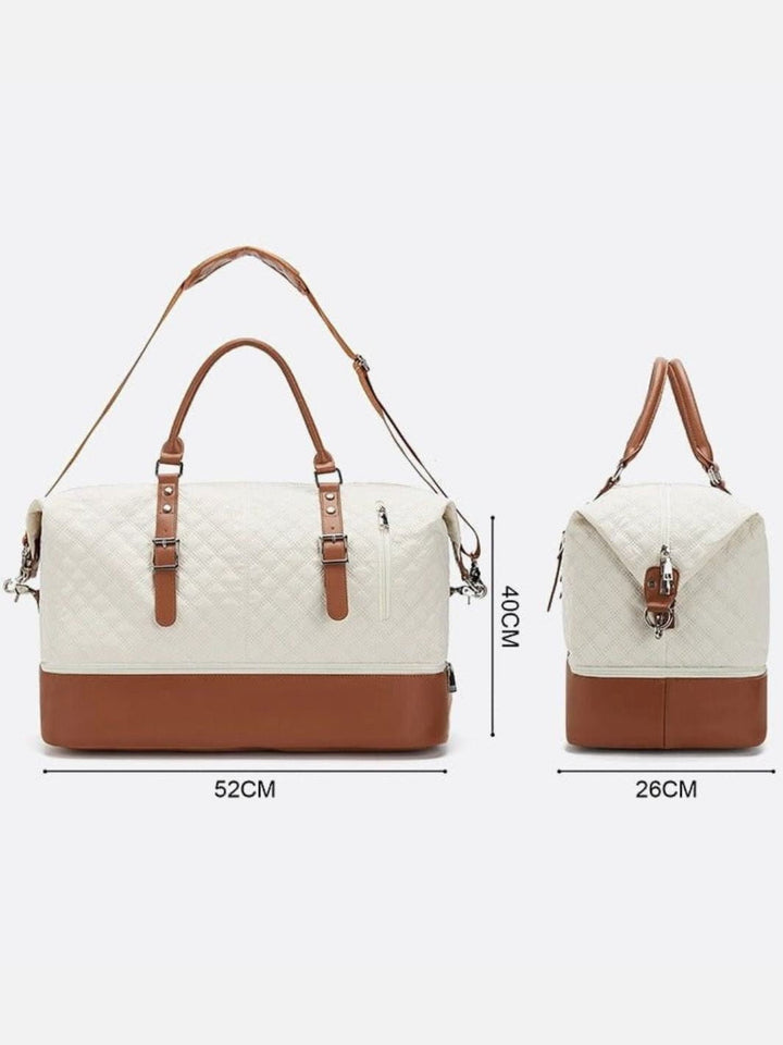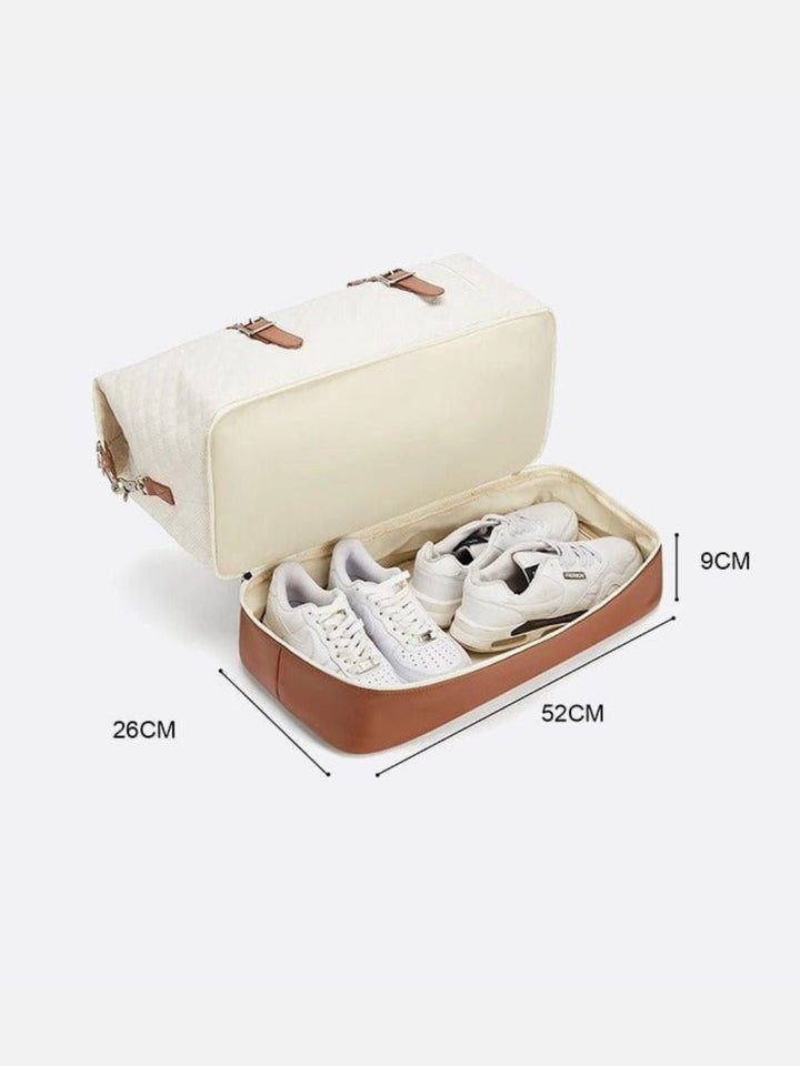 Sa grande capacité permet de tout emporter sans compromis, tandis que la structure souple du nylon matelassé apporte une note féminine et moderne. Le compartiment inférieur, dédié aux chaussures, sépare élégamment les pièces délicates du reste de vos affaires. À l’intérieur, les poches plates et zippées permettent de garder le nécessaire à portée de main : tablette, documents, accessoires, produits de beauté… tout trouve sa place facilement.