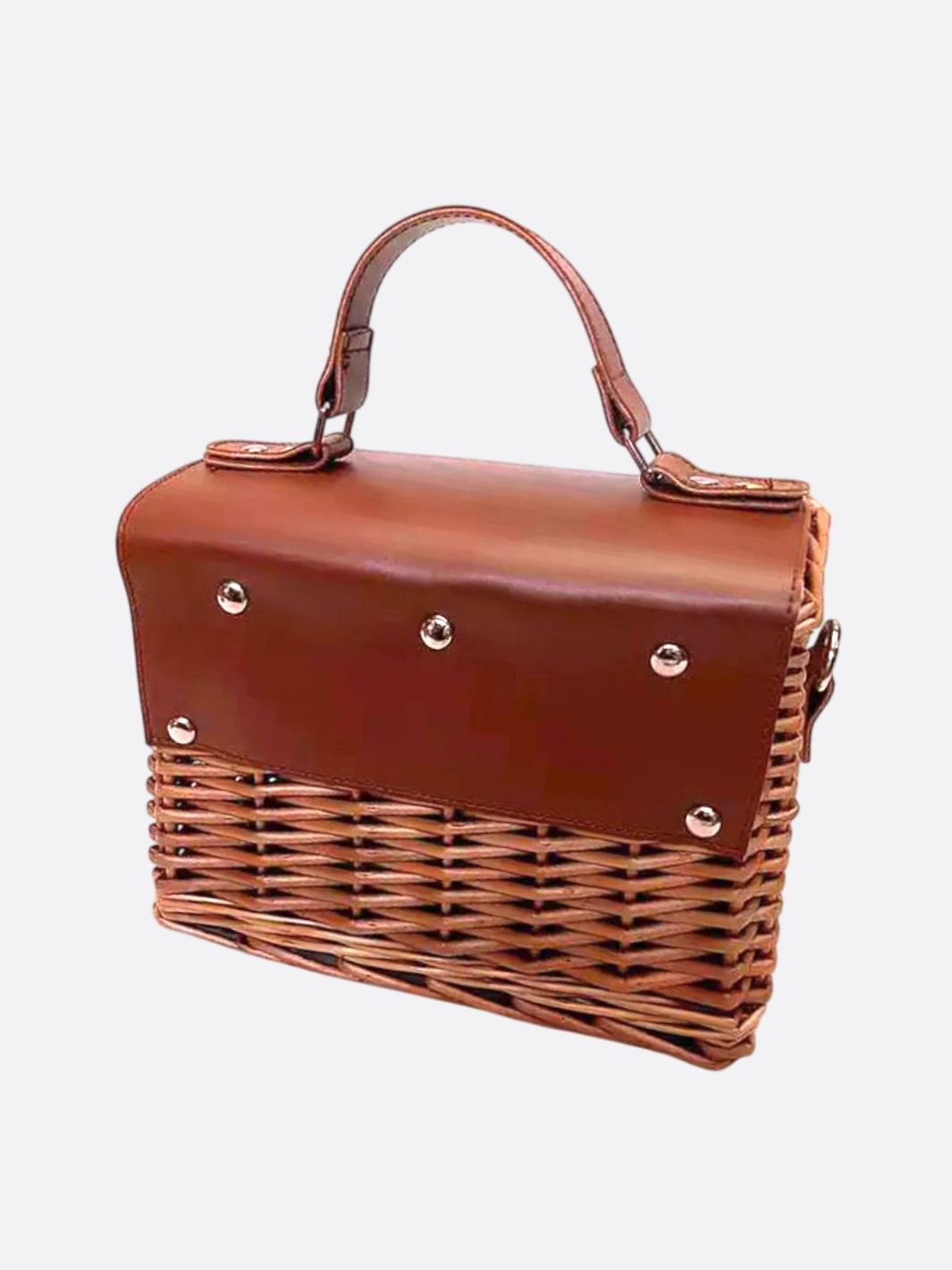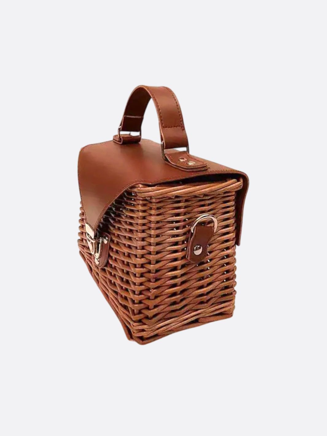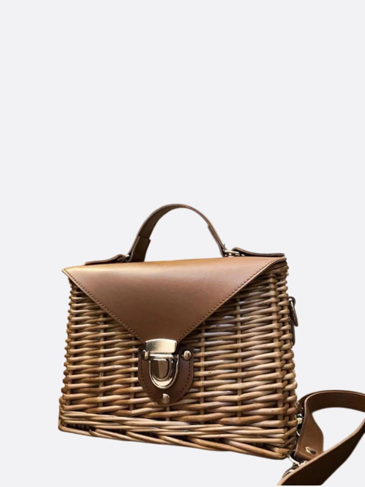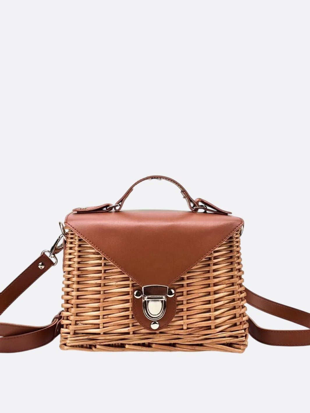 Avec son tressage en rotin raffiné et son rabat lisse contrastant, ce sac rectangulaire incarne l’élégance naturelle réinterprétée dans un esprit contemporain. Sa silhouette structurée lui confère une allure chic et intemporelle, parfaite pour rehausser aussi bien une tenue estivale qu’un look citadin.
