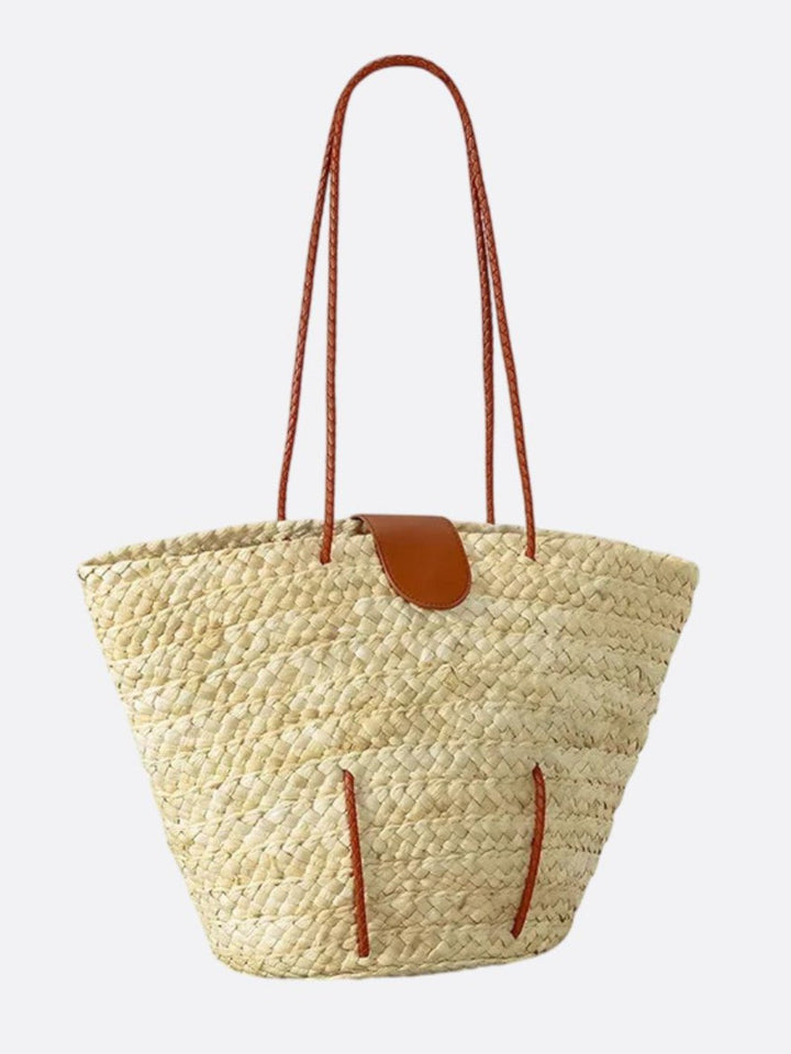 Every detail has been designed to combine comfort and style: a long synthetic leather handle that provides a refined contrast to the light weaving, a flared silhouette that structures the design, and a simple finish that highlights the raw look of the wicker. More than just a basket, it transforms into a true fashion accessory, bringing a natural and bright touch to all your summer outfits.
