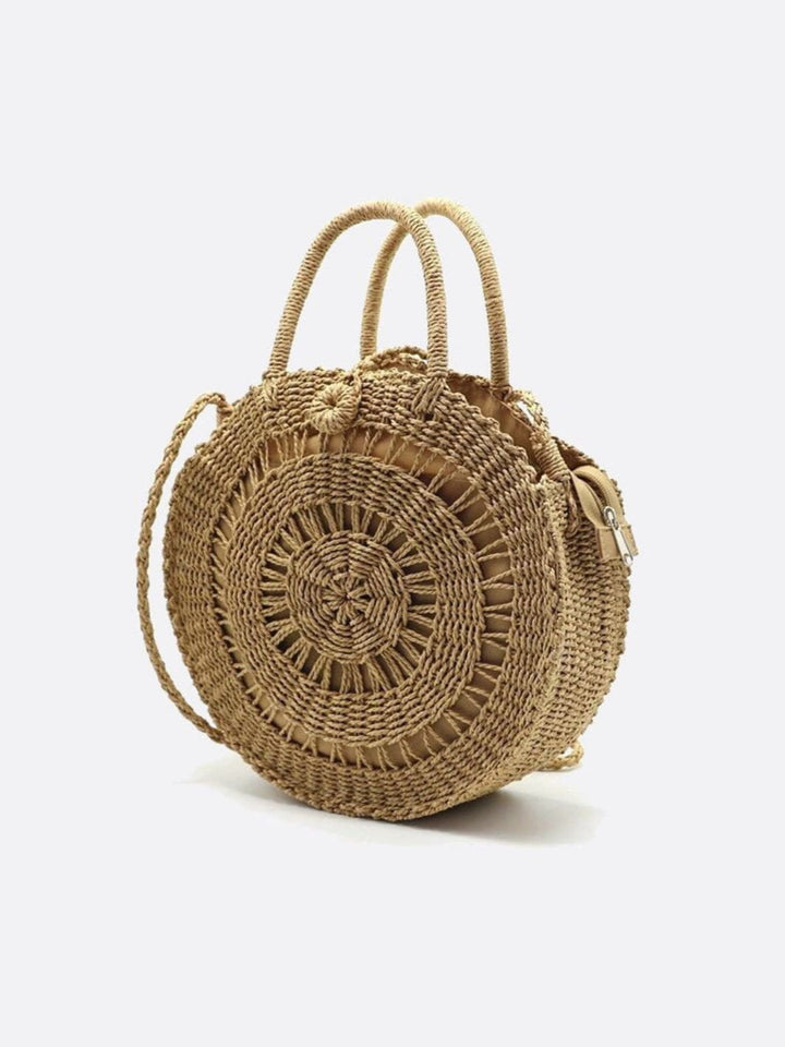 Inspiré de l’artisanat estival, ce sac rond en paille tressée séduit par son design bohème et sa légèreté naturelle. Sa forme circulaire et son tissage ajouré dessinent une allure ensoleillée, idéale pour accompagner les beaux jours.